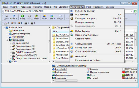 Для удобства и быстрого открытия какого-либо файла или каталога, можно поставить закладку. Встроенные средства этого менеджера позволяют просматривать графику, предварительно прослушивать аудио и просматривать видео файлы, а также файлы форматов HTML, Text, RTF и Hex. xplorer2 можно рекомендовать для работы и компьютерным новичкам, и пользователям, имеющим большой опыт.