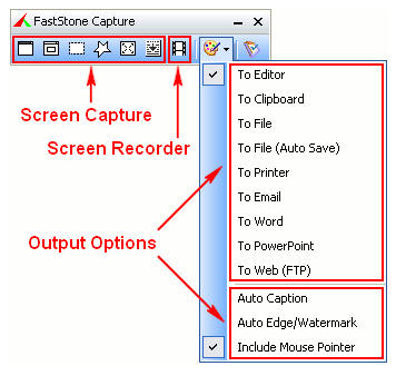 - Панель захвата для быстрого доступа к средствам захвата и вариантам вывода
