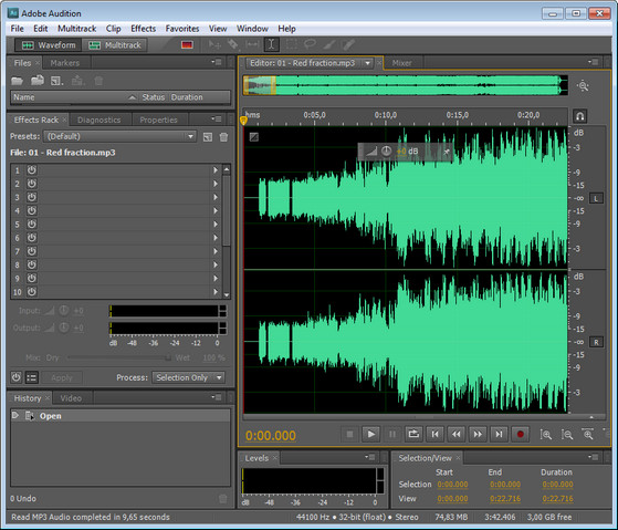 - Создавать высококачественную аудио-продукцию - Adobe Audition поддерживает файлы с глубиной оцифровки до 32-бит и частотой дискретизации более 192 КГц, и запись на любые носители (включая магнитную пленку, CD, DVD или DVD-Audio диски). Вся обработка выполняется в 32-битном разрешении, что позволяет достичь высоко профессиональных результатов.