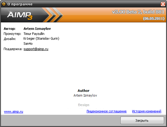 Скачать программу AIMP 3.00 Build 881 Beta 2 (5,77 МБ):