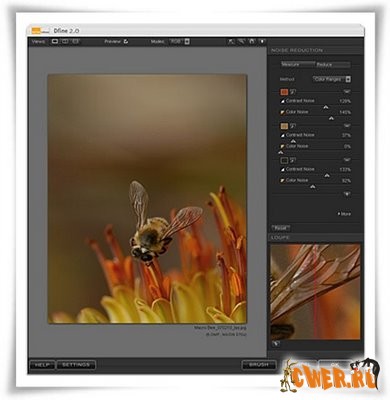 Также можно уменьшить шум, основываясь на диапазоне цветов, и, используя кисти, выделить участок на изображении, который нужно улучшить. Dfine поддерживает работу с графическими планшетами.