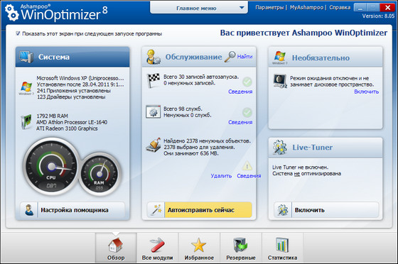 Скачать программу Ashampoo WinOptimizer 8.05 (27,8 МБ):