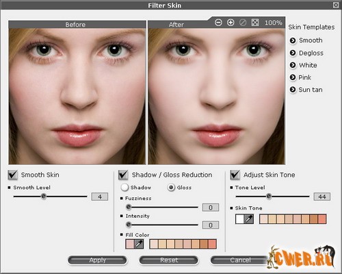 FaceFilter Studio - простой и быстрый редактор цифровых фотографий, специализирующийся на обработке портретов. Программа позволяет менять черты и мимику лица и является своего рода инструментом для виртуального макияжа и виртуальной косметической хирургии. Можно сделать из мрачного субъекта необыкновенно развесёлого человека, создать совершенно безупречное модельное лицо или просто подшутить над знакомыми, придав им облик Квазимодо, например. FaceFilter содержит огромную базу данных портретов, по которым выводит формулу привлекательного лица. Программа сделает так, что на фотографии человек выглядит моложе, умнее, добрее и т.д. Также позволяет пользователям корректировать изображения, в частности, неправильное освещение, эффект красных глаз, неверное соотношение цветов на фото или неудачно пойманное выражение лица.
