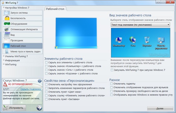- Множество картинок-подсказок для настроек. Эта возможность поможет Вам визуально понять, что произойдет в системе Windows 7 без непосредственного применения настроек.