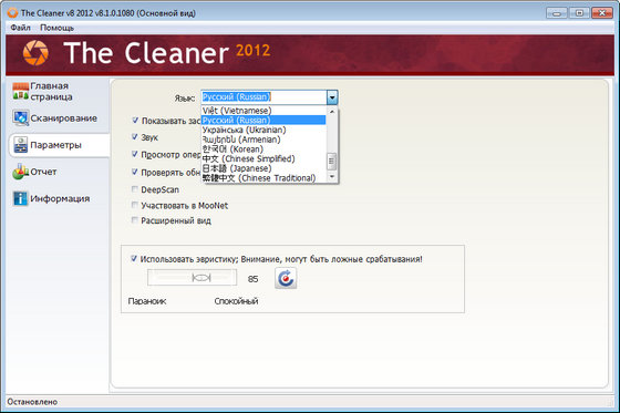 The Cleaner - программа, необходимая для поиска и удаления на вашем компьютере вирусов, троянов, программ-шпионов и различных вредоносных рекламных программ. Включив опцию мониторинга файлов и процессов программа будет всегда следить за всеми программами и процессами на вашем компьютере и при опасных изменениях будет вас информировать, либо сразу удалить их, если файлы будут в опасности. Также имеется зона карантина, проверка компьютера по расписанию, обновление сигнатур через интернет.