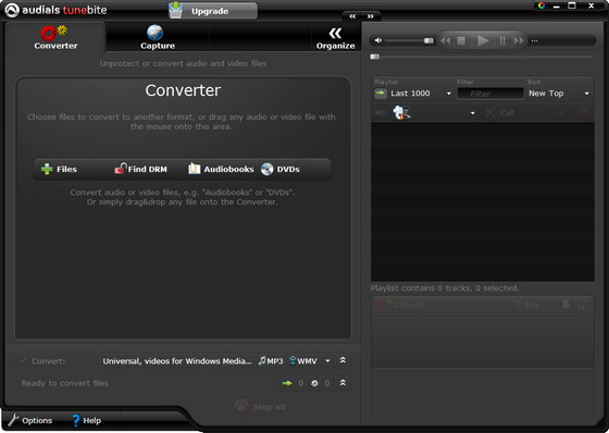 Tunebite - программа, позволяет делать копии с музыкальных файлов, защищенных от копирования. Применяемые технологии цифрового управления авторскими правами (DRM) не дают возможности ни конвертировать их в MP3, ни записывать на компакт-диск, ни проигрывать где-либо, кроме того компьютера, на который этот файл был закачан. Программа позволяет записывать всё, что бы вы ни закачали на компьютер в защищённых цифровых форматах. Возиться с настройками этой программы не нужно, она автоматически определит необходимые для записи параметры звуковой карты. Кроме всего перечисленного, данная программа позволяет записывать защищенное аудио и видео на CD/DVD, изготавливать рингтоны для мобильных телефонов и переносить файлы на мобильные устройства.