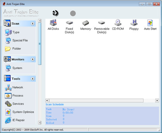 Anti-Trojan Elite - программа для удаления всевозможных троянов и keylogger, которая также поможет обезопасить вашу работу на компьютере. Утилита может сканировать, в поисках опасных файлов, жесткий диск или память ПК, обладает встроенным сетевым менеджером для мониторинга протоколов, имеет менеджер запущенных процессов, позволяет создавать резервные копии удаляемых файлов. Кроме того, присутствует модуль оптимизации работы ПК, функция обновления программы через Интернет, имеется поддержка работы со сжатым файлами, защита реестра и т.д.