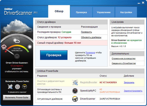 Скачать программу Uniblue DriverScanner 2011 4.0.1.6 (5,6 МБ):