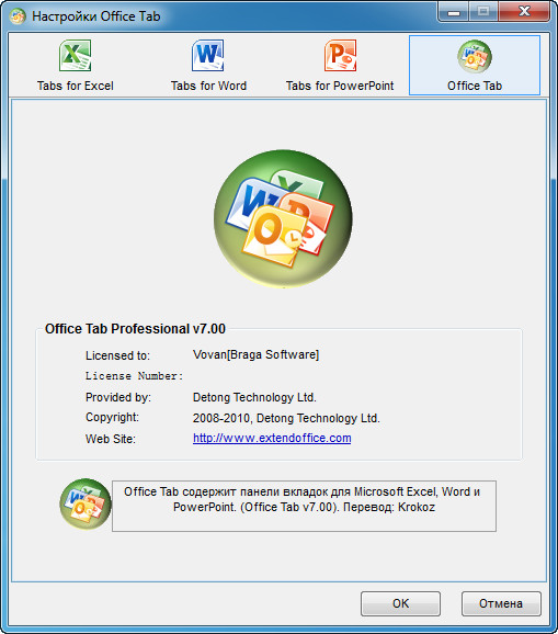 Скачать программу Office Tab Professional 7.00 (2,19 МБ):