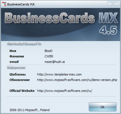 Скачать программу BusinessCards MX 4.5 (87,8 МБ):