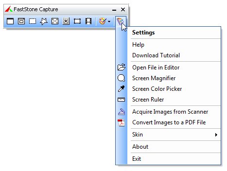 FastStone Capture представляет собой довольно мощное, но в то же время простое средство для захвата снимков с рабочего стола Windows. Позволяет захватывать как отдельные элементы, окна, части рабочего пространства, так и полный экран (поддерживается прокрутка страниц). Оснащена небольшой панелью для манипуляций с изображениями. Кроме того, имеются в наличии такие элементы, как экранная лупа, пипетка и линейка, что делает программу ещё более универсальной.