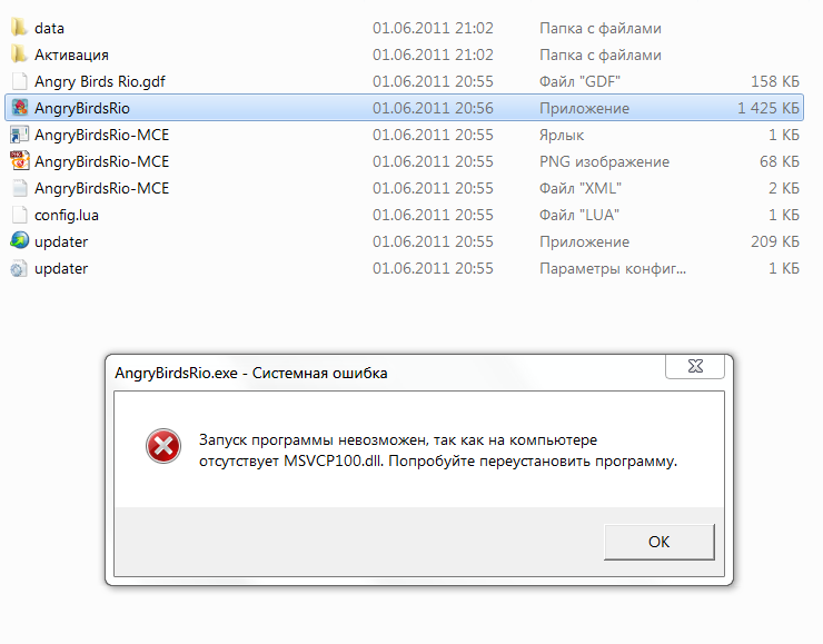 7х64 "Запуск программы невозможен , так как на компьютере отсутствует msvcr100.dll переустановка поможет"