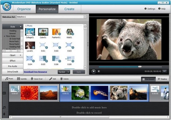 Wondershare DVD Slideshow Builder - идеальное приложение для новичков, чтобы создавать кинокартины в стиле Голливуда из обычных фотографий. Начиная с того, что вы можете добавлять неограниченное количество фотографий, вы также сможете добавлять киноэффекты, а затем записывать свои шедевры на DVD и смотреть их с семьей и друзьями по телевизору, выкладывать в Интернете и записывать на портативные устройства.