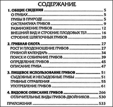 В книге собраны сведения о съедобных, несъедобных и ядовитых грибах, даны сроки плодоношения и приметы. Подробно описано более 350 видов, приведены русские и латинские названия грибов. Книга снабжена множеством цветных иллюстраций.