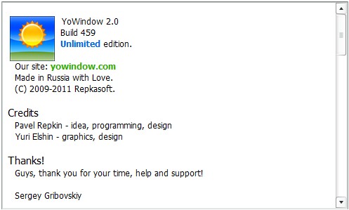 Скачать программу YoWindow 2.0 Build 459 Unlimited Edition (5,51 МБ):