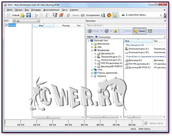 - Перенос файлов методом перетаскивания для записи на компакт-диски, диски DVD и Blu-ray, а также для сохранения образов