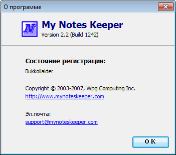 Программа My Notes Keeper предназначена для хранения самой различной информации (личных записей, e-mails, картинок, URL-ов, документов, контактов и паролей). Имеет встроенный текстовый редактор с поддержкой форматирования, возможностями вставки таблиц, изображений и специальных символов. Информация в программе представлена в виде записей. Благодаря древовидному интерфейсу, поиск нужной информации не занимает много времени. При необходимости данные, хранящиеся в программе, могут быть зашифрованы и защищены паролем.
