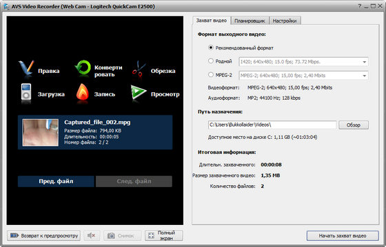 AVS Video Recorder – это программа, предназначенная для переноса в цифровой формат видео с камер, камкодеров и других устройств захвата видео. Сохраняйте видео на компьютере и создавайте DVD с домашим видео. Кроме того, она позволяет осуществлять захват видео с веб-камер, кодировать видео напрямую в MPEG-2 вместо родного аппаратного несжатого видео формата и сохранять на вашем компьютере.