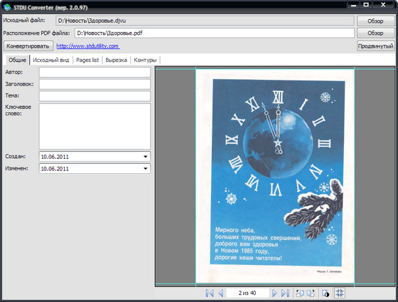 STDU Converter - конвертор DjVu в PDF всего в два клика. Вы можете конвертировать только часть книги или ее целиком, а так же выстроить свое дерево документа на выходе. Пользоваться чрезвычайно просто, - находите документ в DjVu или TIFF формате и нажимаете кнопку "Старт", и Все! Не забудьте только, указать папку куда вы будите складывать готовые PDF файлы.