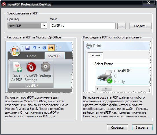 NovaPDF Pro - программа для создания файлов в формате PDF из других файлов с данными. Благодаря существующим настройкам вы сможете устанавливать разрешение изображений, соответствующую информацию, степень компрессии, безопасность, профайлы и другие параметры. Поддерживается работа с файлами в форматах DOC, XLS, PPT, HTML, EML, TXT и другими, имеется возможность установить пароль на создаваемый файл, присутствует опция изменения размеров страниц и разрешения изображений. Поддерживается работы со шрифтами TrueType и OpenType, поддерживаются методы компрессии ZIP и JPEG и т.д.