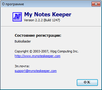 Программа My Notes Keeper предназначена для хранения самой различной информации (личных записей, e-mails, картинок, URL-ов, документов, контактов и паролей). Имеет встроенный текстовый редактор с поддержкой форматирования, возможностями вставки таблиц, изображений и специальных символов. Информация в программе представлена в виде записей. Благодаря древовидному интерфейсу, поиск нужной информации не занимает много времени. При необходимости данные, хранящиеся в программе, могут быть зашифрованы и защищены паролем.