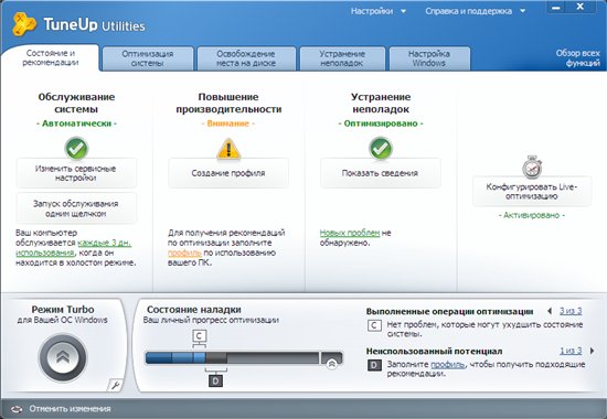 TuneUp Utilities 2011 - новая версия большого набора всевозможных инструментов для настройки и оптимизации системы. При помощи этой программы вы сможете очищать диски от мусора, удалять неверные записи из системного реестра и дефрагментировать его, оптимизировать оперативную память, управлять автозагрузкой, навсегда удалять файлы с диска при помощи специальной утилиты ”TuneUp Shredder” (дальнейшее восстановление становится невозможно даже при помощи специальных программ), восстанавливать удаленные файлы, изменять внешний вид Windows, и многое другое.