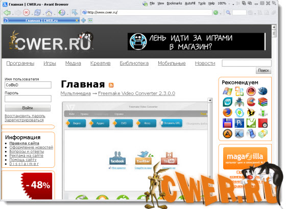 Скачать программу Portable Avant Browser 2011 Build 23 Final (3,26 МБ):