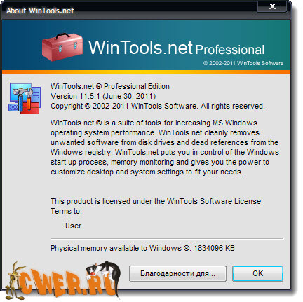 WinTools.net – набор инструментов для оптимизации операционной системы Windows. В состав программы входят компоненты для полного удаления нежелательных программ и «мертвых» ссылок реестра, а также для контроля процессов, настройки системы, интернет-соединений и интерфейса. Кроме того, имеются утилиты для надежного хранения конфиденциальной информации.