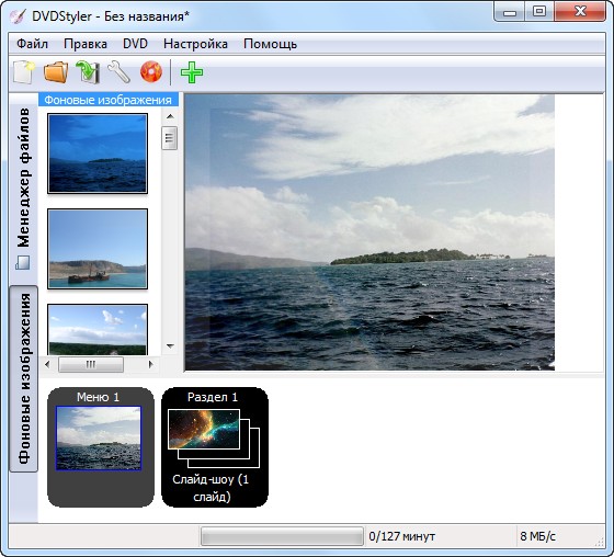 - импорт графических файлов для заднего фона DVD меню