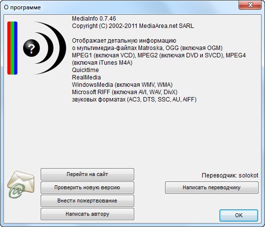 Скачать программу MediaInfo 0.7.46 Final x64 (3,15 МБ):