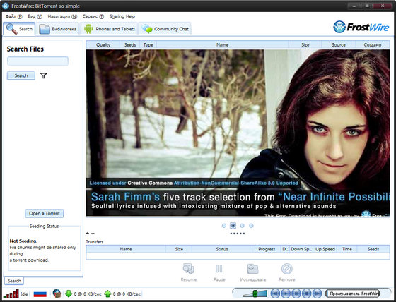 FrostWire поддерживает создание динамических запросов и, если возникает такая необходимость, осуществляет предварительный просмотр загружаемого файла. Кроме того, FrostWire готова похвастаться продвинутой технологий поиска редких файлов и интуитивно понятным интерфейсом.