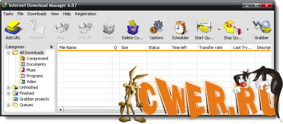 Internet Download Manager - предназначен для организации загрузок файлов из Интернет. Различные методы ускорения загрузки, динамическая сегментация файлов и одновременное скачивание нескольких частей, использование свободных открытых подключений без реконнекта и многое другое. Встроенная звонилка для соединения по расписанию. поддержка файрволлов, прокси и зеркал, FTP and HTTP protocols, редиректов, куки, очередей закачки, авторизации пользователя. Internet Download Manager интегрируется в Microsoft Internet Explorer, Netscape, MSN Explorer, Opera and Mozilla и автоматически перехватывает закачки. Зачастую увеличивает скорость скачивания на 500%. На странице программы есть диаграммы тестов с другими менеджерами закачек.