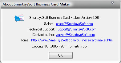 SmartsysSoft Business Card Maker программа для легкого и быстрого изготовления визиток. Вся работа проходит при помощи "мастера", упрощающего процесс создания визитки. Встроенные в программу инструменты позволяют создать профессионально выполненные визитки самых разнообразных размеров и стилей оформления, поддерживается совместная работа со сканером, для упрощения изготовления визиток работникам предприятия допускается создание внутренней базы данных.