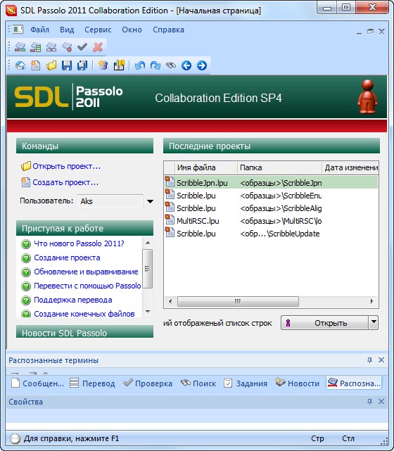 - Терминология теперь предоставлена также из списков переводов Passolo;