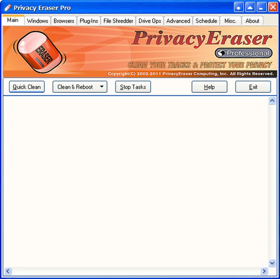 Privacy Eraser Pro - программа для очистки следов пребывания в интернете для таких браузеров: Internet Explorer, Mozilla Firefox, Google Chrome, AOL, Opera and MSN Explorer. А также поддерживает более 250 плагинов для очистки следов приложений, таких как: ACDSee, Acrobat, Microsoft Office, KaZaA, Real Player, Media Player и т.д.