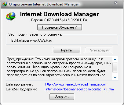 Скачать программу Internet Download Manager 6.07 Build 5 Final (4,58 МБ):