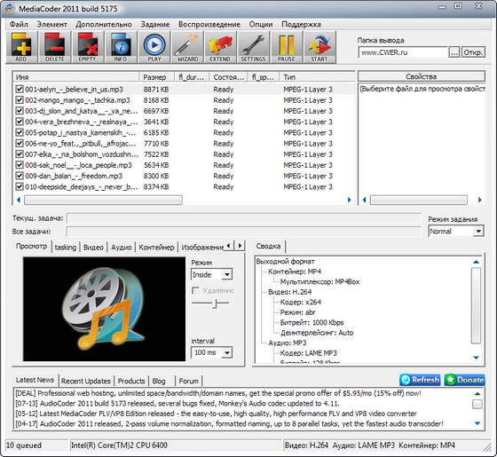 Скачать программу MediaCoder 2011 R7 5175 Final x86 (28,96 МБ):