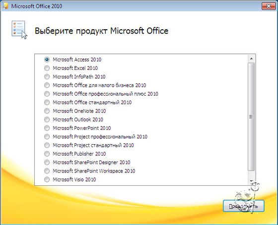 Microsoft Office 2010 Select Edition — содержит и позволяет установить все VL-редакции как офисных пакетов, так и отдельных приложений по-отдельности.