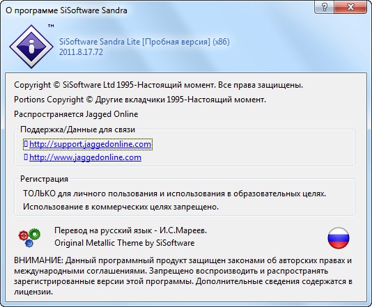 Скачать программу SiSoftware Sandra Lite 2011.8 v17.72 (54,62 МБ):