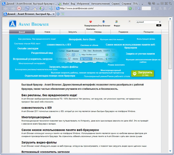 Скачать программу Avant Browser 2011 Build 28 (3,2 МБ):