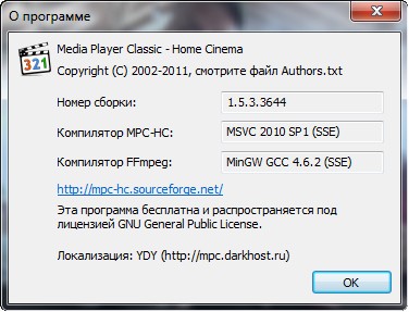 Скачать программу Media Player Classic HomeCinema 1.5.3.3644 х64 (5,6 МБ):