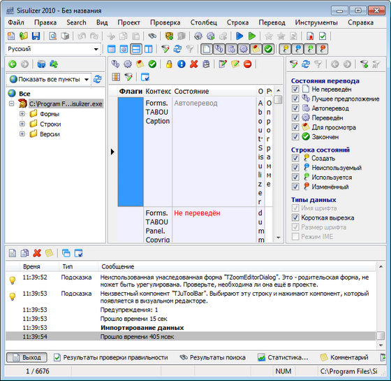 - Сохранение локализованной версии в бинарные форматы файлов: EXE, DLL, OCX