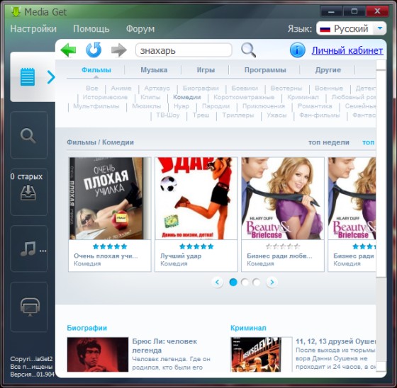 MediaGet - утилита для поиска и скачивания медиафайлов на открытых торрент-трекерах. Каждый человек, пользующийся интернетом, привык скачивать из сети различную музыку, фильмы или игры напрямую с сервера. Но бывают ситуации, когда на любимом сайте искомый файл отсутствует по каким-либо причинам... В этих случаях на помощь приходит замечательный сервис MediaGet, который откроет вам доступ в мир закрытых пиринговых сетей, в которых возможно найти практически любой нужный вам файл. Будь то редкая музыка, недавно вышедший фильм или любая программа - всё это можно скачать с помощью MediaGet. Программа поддерживает огромное количество открытых торрент-трекеров, вы без труда найдете нужный вам файл и скачаете на максимальной скорости.