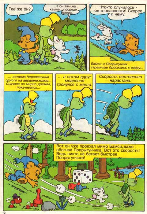 Самый сильный в мире медвежонок Бамси – герой шведских мультфильмов для самых маленьких зрителей и комиксов по мотивам мультфильмов. Каждое утро Бамси съедает банку чудо-меда, который умеет готовить только его бабушка. Мед делает Бамси очень сильным, но свою силу он использует только для того, чтобы помочь друзьям. А друзей у Бамси немало. Главный друг Бамси – кролик Попрыгунчик. Он очень боязливый, но с таким другом, как Бамси, бояться нечего. Попрыгунчик выращивает морковку, которую очень любит. Черепашкин изобретатель, он постоянно что-нибудь придумывает. Но одно его изобретение сильно усложняет общение с Черепашкиным – это чудо-будильник, который звонит каждый раз, когда Черепашкину пора есть или спать. Изобретатель строго соблюдает режим, и если звонок звенит, он ложиться спать или начинает закусывать, где бы не находился. В любой истории не обойтись и без отрицательного героя. В данном случае это Черный Волк. Волк живет в лесу и постоянно делает всякие пакости, вместо того, чтобы дружить с Бамси и остальными обитателями сказочного леса. Есть и злой Крез, мышь-бизнесмен, который постоянно хочет заработать на друзьях Бамси состояние. Но это ему не удается. Комиксы о Бамси в Швеции издавались с 1973 года. В России комиксы о Бамси появились в начале девяностых годов.