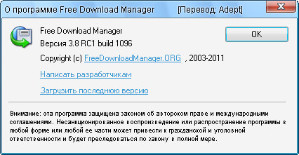 Скачать программу Free Download Manager 3.8 Build 1096 RC1 (6,4 МБ):