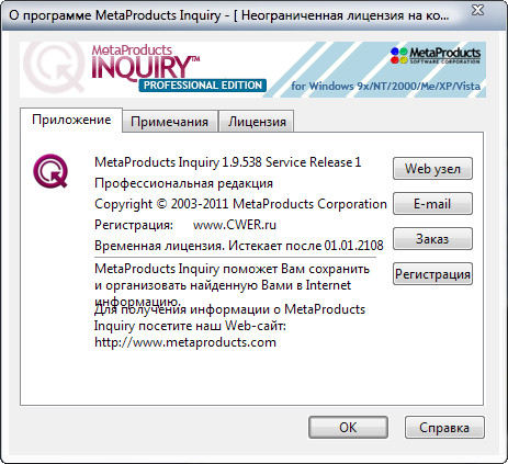 Скачать программу Inquiry Professional Edition 1.9.538 SR1 (4,42 МБ):