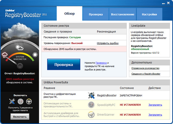 Скачать программу RegistryBooster 2011 6.0.7.2 (6,64 МБ):