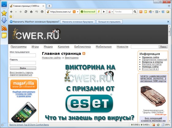 Скачать программу Maxthon 3.1.6.1000 Final (29,97 МБ):