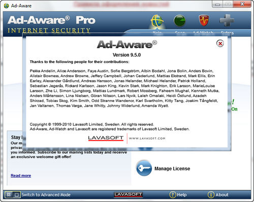 Ad-Aware Pro Internet Security - создан для обеспечения надежной защиты компьютера от известных угроз – кражи личных данных, агрессивной рекламы, сайтов-паразитов, мошеннических программ, некоторых традиционных троянов, номеронабирателей, вредоносных программ (Malware), браузерных "перехватчиков" (Browser hijackers) и шпионских компонентов.