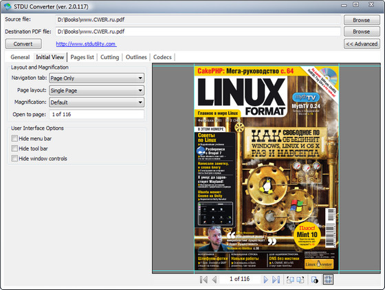 STDU Converter — конвертор DjVu в PDF всего в два клика. Вы можете конвертировать только часть книги или ее целиком, а также построить свое дерево документа на выходе.
